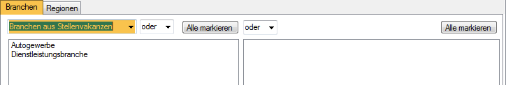Unter dieser Auswahl werden alle 'Branchen' gemäss Adressstamm, Register [Stellenvakanzen] aufgelistet.