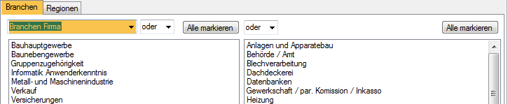 Bei dieser Auswahl werden nur Firmen inkl. Kontaktpersonen aufgelistet, bei welchen die ausgewählte 'Branche' im Register [Kontakte], [Branchen] einer Kontaktperson zugewiesen wurde.