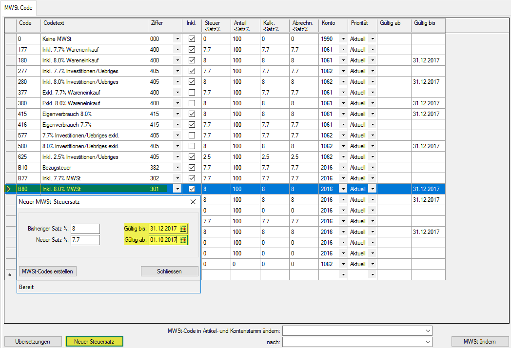 Steuersätze gültig bis 31.12.2017